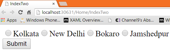 Now whenever a user selects any of the radio buttons, we want the selected choice value to be displayed and since this Submit button will generate a post request we need to create an IndexTwo post method.