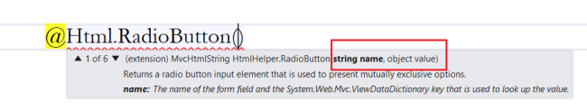 We can use the third overloaded version of this RadioButton that expects HtmlAttributes and in the previous article we learned how to initialize the values in this parameter.