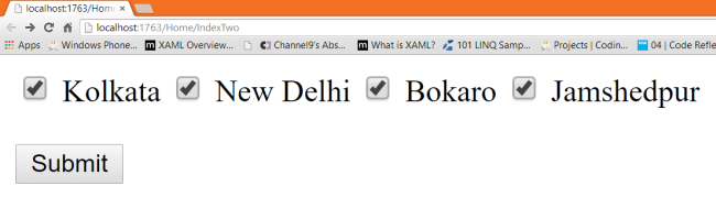 - If a user selects any of the items then if the block condition will be false and it will come to the else block in which we created a new object of the StringBuilder class. Inside the foreach loop, we appended the CityName of the selected checkbox.