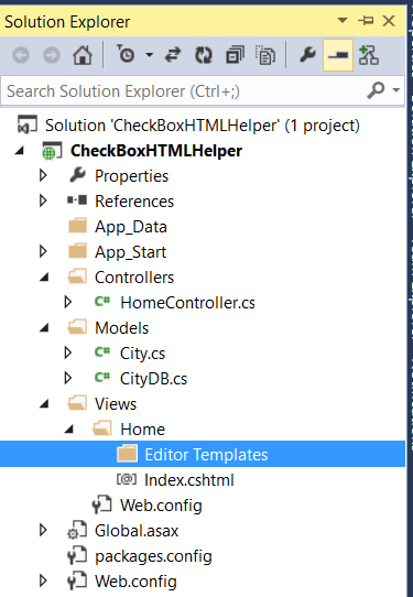 Expand the Home folder in the Solution Explorer and add another folder “Editor Templates”.
