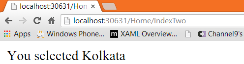 Let's say for some reason whenever this page is requested by the users, we want Kolkata to be selected by default.