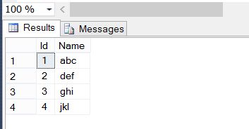 - INSERT INTO NonIdentityTable (Id,Name) VALUES (1,'abc'),(2,'def'),(3,'ghi'),(4,'jkl');