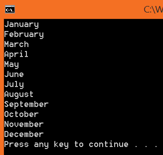 In our main method, we created a new list collection “Month” of type string. In this collection we added all the 12 months as items in this list.