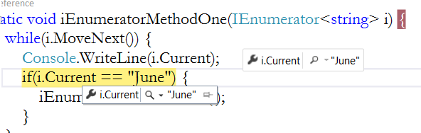 So, now the current item is June which means the if block will be executed and this block will invoke iEnumeratorMethoTwo.