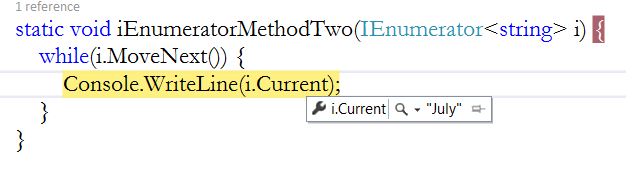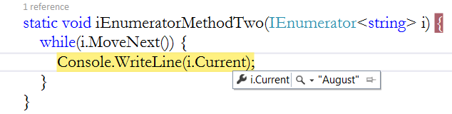 - Console.WriteLine(iEnumeratorOfString.Current);