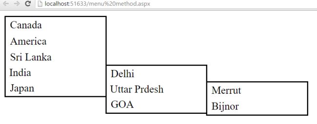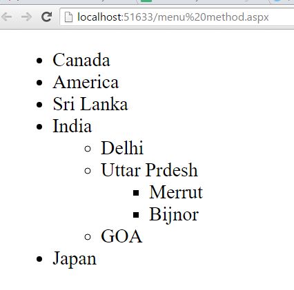 Example: This example show the use of .menu() method and how elements are arranged in a list.