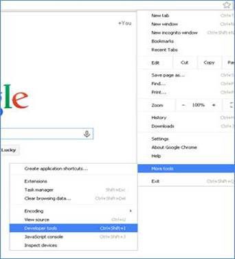 Open Google Chrome browser. From the top menu select More Tools > Developers tools.