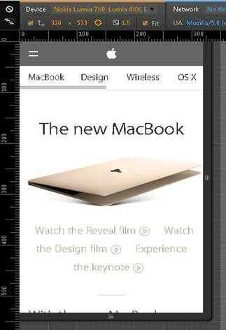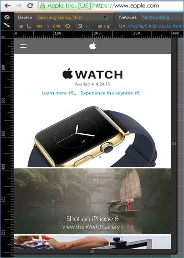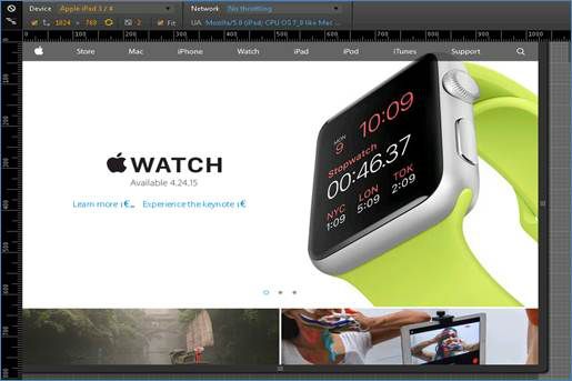 Select the Apple iPad option from the devices menu then enter the Portal URL in the browser address bar, for example https://www.apple.com and hit enter. The view will change to emulate an iPad environment.