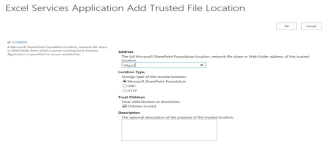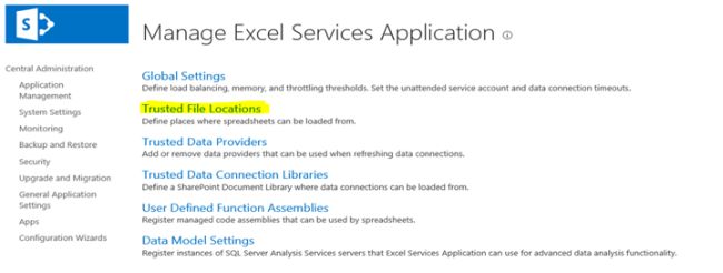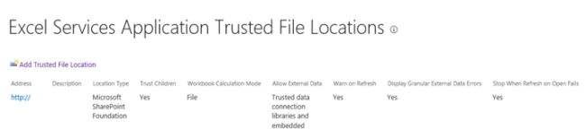 - On the Manage Excel Services Application page, click "Trusted File Locations”.