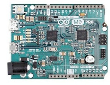 The development board Arduino Mo Pro is equipped with an Atmel microcontroller ATSAMD21G18 based on an ARM core Cortex Mo + 32-bit. The D21G18A has a flash memory of 256 Kb (4 of which are occupied by the bootloader), 32 Kb of SRAM and operates at a frequency of 48 MHz. This core provides Arduino Pro Mo with high flexibility, increasing the range of possible projects to be implemented, such as wearable devices, Internet of Things (IOT), high-tech automation, robotics and more. A fundamental characteristic that makes this device unique in the Arduino family is that the debugger is embedded in the card edge (EDBG), which eliminates the need for additional hardware. EDBG (Embedded Debugger) provides streaming data between the PC and MCU. In addition to programming and debugging using Atmel Studio, it also supports a virtual COM port to program the device in the functionality of the Arduino bootloader.