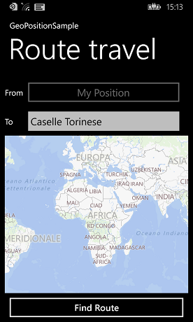 Now open the file RouteTravel.xaml.cs, where we will implement the method FindRoute() just described. What and manage the event and tap the button btnFindCoordinate, where we will call the method, so insert the following code.
