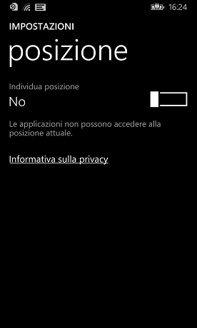 Image 1.6 The Position screen in Setup.It is true that the user will be warned by a screen asking to accept the conditions laid down on the use of the position, if you decide to download an application from the store that makes use of the Geolocation Services, however to expect this feature, because it requires little time and date the user the ability to turn on and off at any time Geolocation Services.
