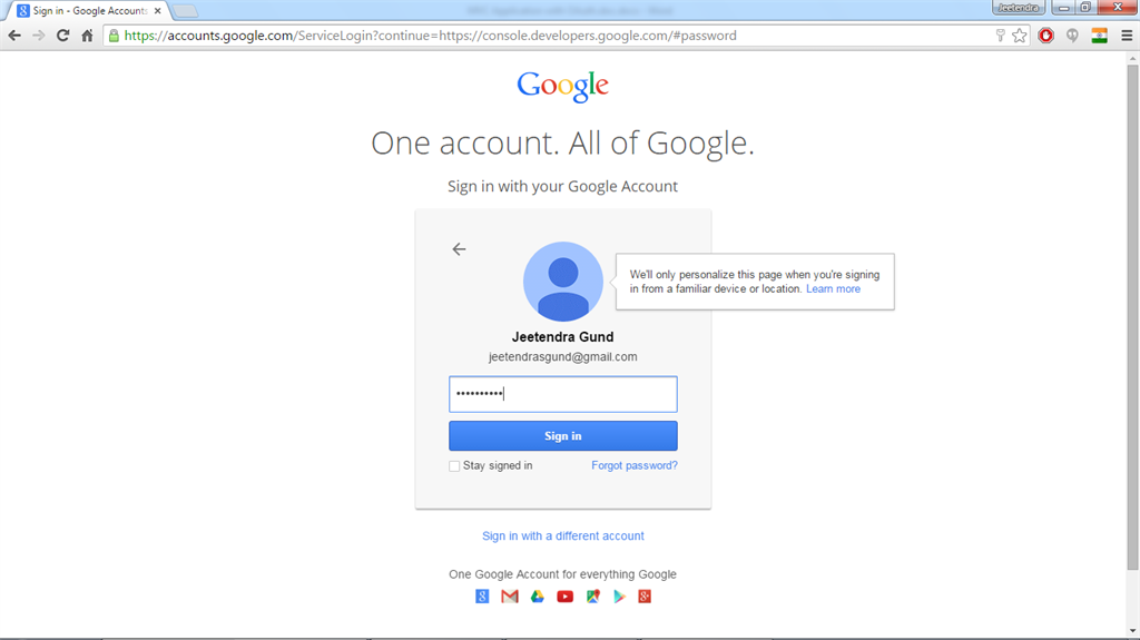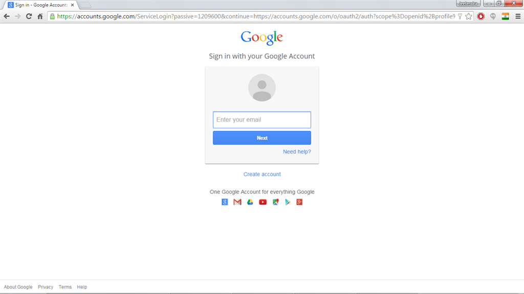 Here we enable the Open Authentication for our MVC 5 application. Click on the Google button and it will redirect to your Google log in page. See the following screen.