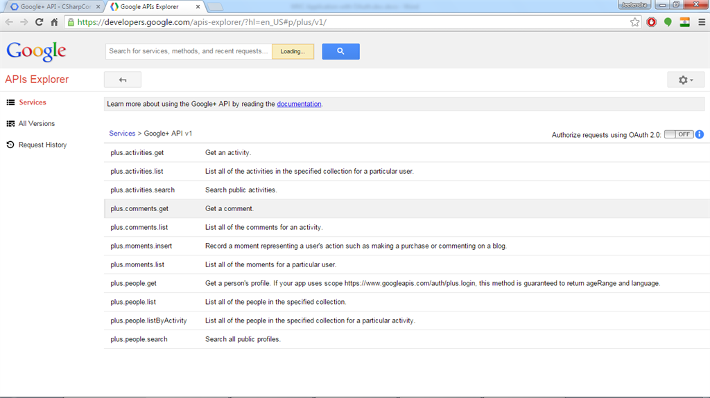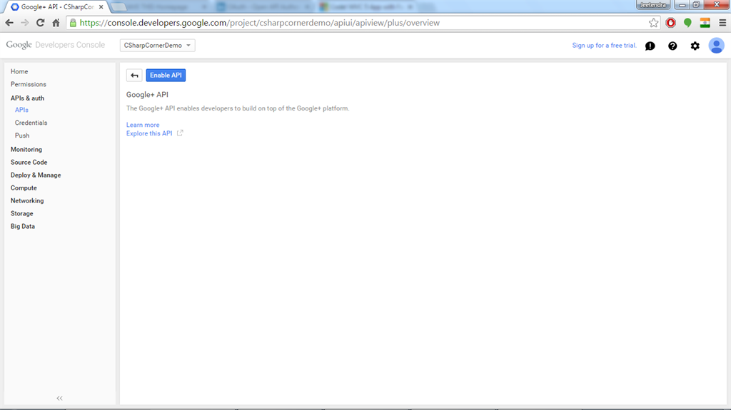 In the preceding screen you can see various Google provided APIs. Select Google+ APIs. You will see the screen as in the following: