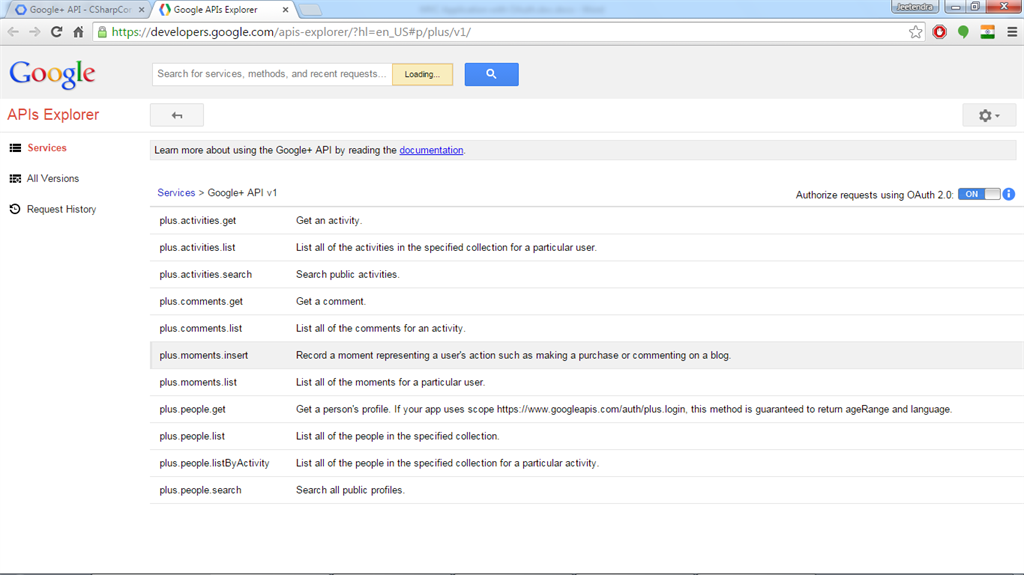 OAuth stands for Open Authorization. It is an open standard for token-based authentication and authorization. It began in November 2006 when Blaine Cook was developing the Twitter OpenID implementation. That version is OAuth 1.0 and the next version in Oct 2012 is OAuth 2.0 that is a stable version and now open with various other authentications also like Facebook, Google etc.