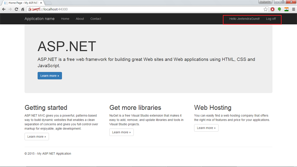 Congratulations, you have successfully logged in with your Google Account in your new MVC 5 Application.