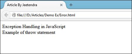SummaryI hope you understand the concepts of errors and Exception Handling in JavaScript and this is useful for all readers. If you have any suggestion regarding this article then please contact me.