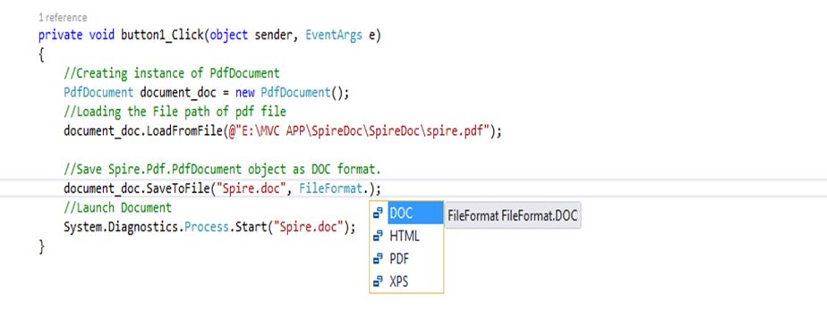 Convert the PDF file into Document format using “FileFormat.Doc” as in the following: