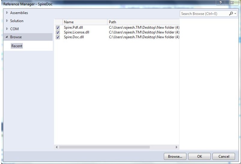 - Add the Spire.Pdf, Spire.Doc and Spire.License DLL files to the bin folder
