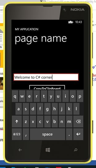 Create a new Windows Phone 8 project and create one button and two textboxes as shown in the following clipboard operation.