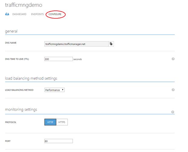 The Traffic Manager can monitor your services to ensure they are available. For monitoring to work correctly, you must set it up the same way for every endpoint within this profile. You can specify this protocol, the port and the relative path. The Traffic Manager will try to access the file specified in the relative path via the defined protocol and port to check for uptime.