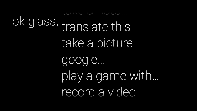 Now I can say "ok glass" or tap on the right of glass (touch pad) to get options, when I said “ok glass”, these were the options I got.