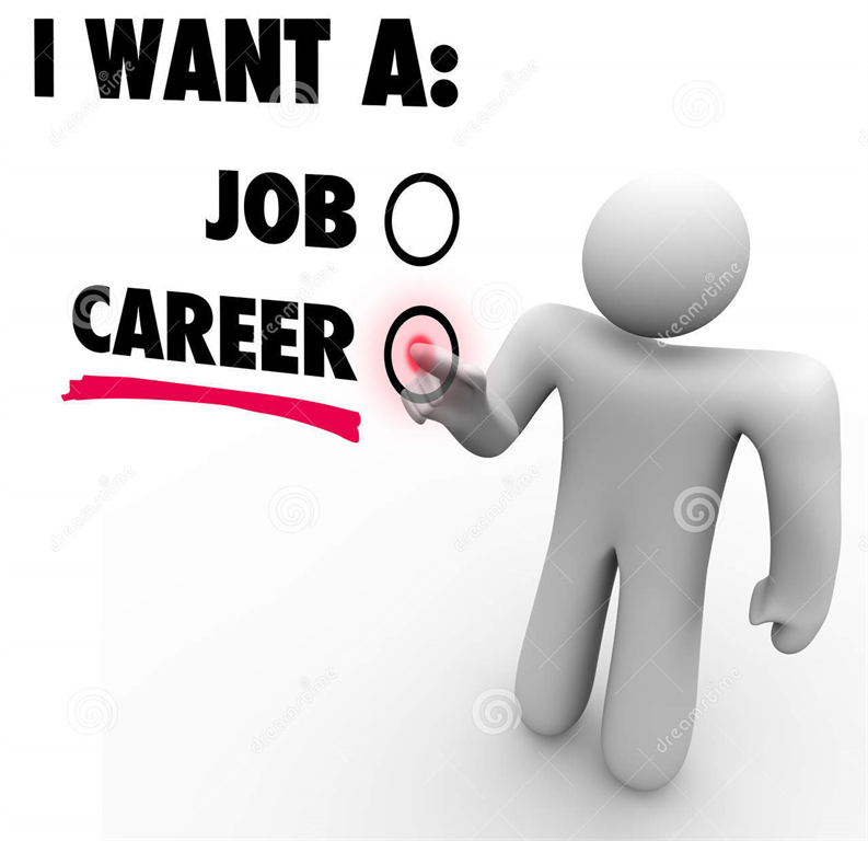 You can apply for a job, but you can't apply for a career. A job is given to you; a career is made by you.