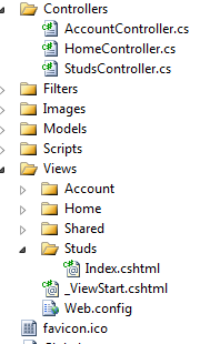 See the following Solution Explorer to see the automatic view folder of Studs that was created.