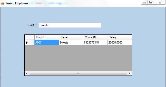 Here, I have the database table from where I searched the name that is typed in the textbox.