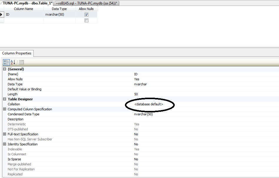 Here the CI is case insensitive.CS is case sensitive,So by default in SQL Server the collation is case insensitive and that's why it does not worry about any cases, so it is case insensitive.Since SQL Server is case insensitive all the databases in it are also case insensitive.Here I have a requirement in my project for a log in the form and I need to match the data. If only the data is in the the same cases then what I will do is fetch the data and check if only the spelling is correct. SQL Server will not check any cases.Thus to overcome this problem we need to use the collate manually in our database or in our column of a table.Here I am giving an example of both types of collations.Here I have created a database mydb with case sensitive collations with the following table and records.My table student will look like this:Now I am trying this query to fetch the records.Here my database collation is case insensitive and my query id is not in the proper case as per my record so I am getting the result like this.Now if we create another database with case insensitive collation then creating the same student table and adding same records there.Now here I am selecting a record with case insensitive id but this will work because our database that is "Mydb1" is created with case insensitive collation.So the result will be:In this way we can change the collation of a database and work depending on our requirements, similarly we can change our Column collation.To check the collation, expand the database then right-click on a table then go to the property menu and check the extended property.Since we have created the CS collation the collation here is showing CS. But by default the collation is CI. If we want to check the collation of a column of a table then we can check it when creating the column like this:It is the default based on the database.