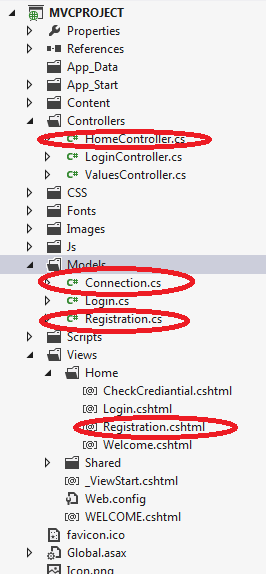 - My connection class in my model contains the connection string with all the operation for CRUD operations. Here I am showing this class.