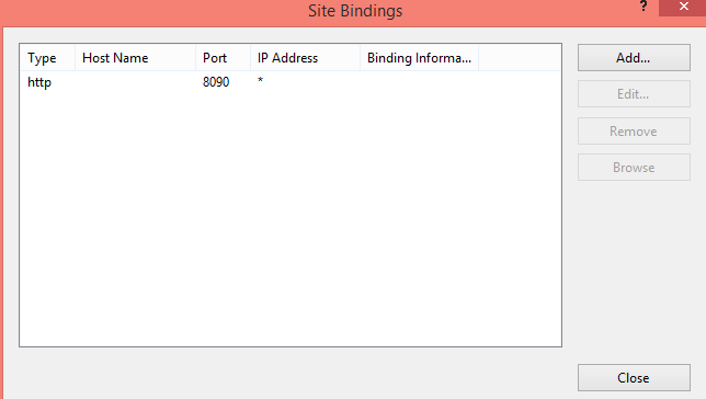 Now Right Click on the website and select "Edit Binding".