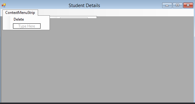 Before that create a windows project and add a DataGrid to show data and a ContextMenuStrip on it as in the following screenshot:
