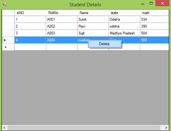 Now here, I have explained how to delete a record from DataGridView using ContextMenuStrip.