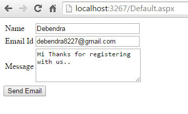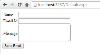 Now in the "default.aspx", I have the following design view to send an email.