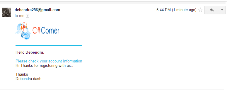 After clicking the Send Email button check your email. You will get the HTML designed mail. Here is the mail I received.