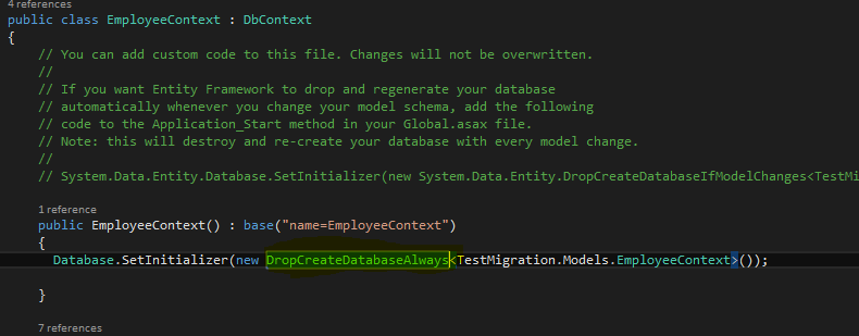So here I am explaining each and every database initializer and how we can use them in our project.