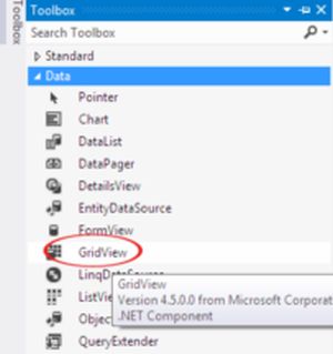 Open CarsFrm in Design view, you can double-click on the form name from the Solution Explorer, make sure the form is in design view. Then from the toolbox select GridView as shown in the figure, drag the GridView to the form.