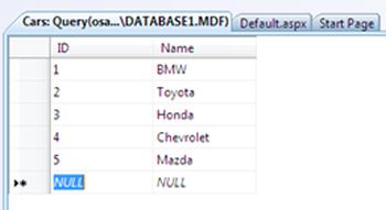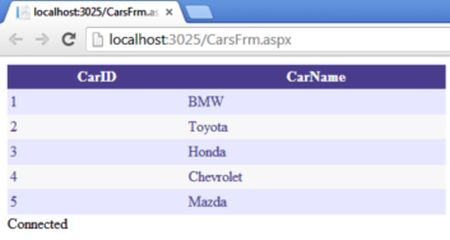We successfully loaded the contents of the Cars table into our website.