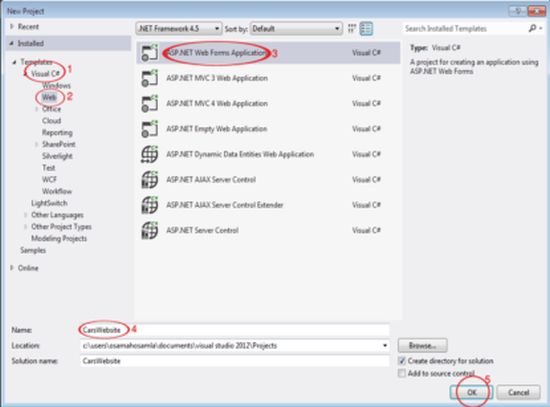 - Select ASP.NET Web Forms Application