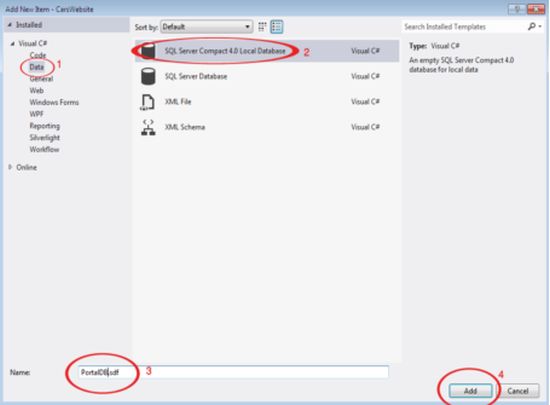 - Select SQL Server Compact 4.0 Local Database