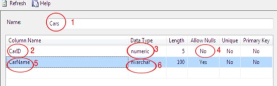 - Choose “No” for the “Allow Nulls” to make the ID field the primary key of the table