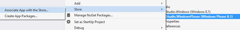 We can associate the app with the store and for that there are two ways: associate it in Windows AppStudio or associate it in Visual Studio.