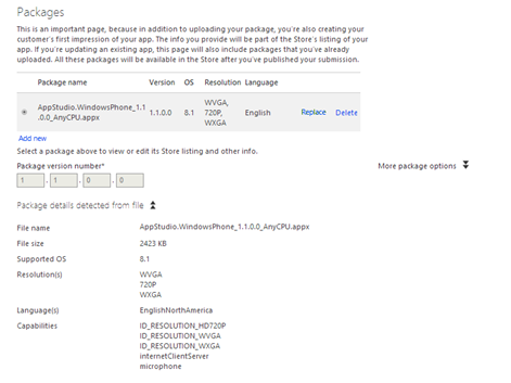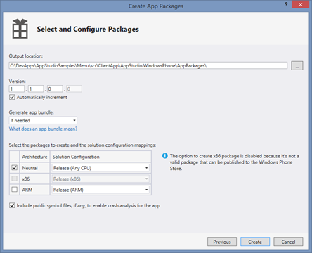 And we will get another wizard where we can choose if the package will be for the Store and at the end we can set the package version, the output folder and others.