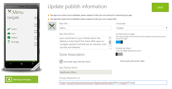 - Microsoft's Windows App Studio Beta: How to add Push Notification to the Menu App