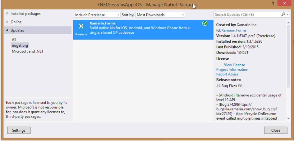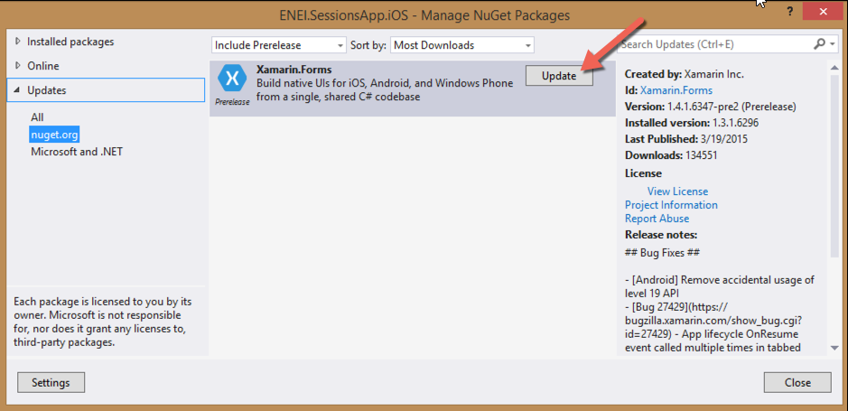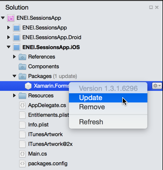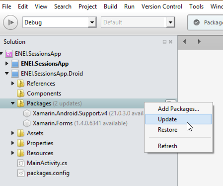 Now, you should update the Nuget Packages available in the project. In the case described in Figure 4, you only need to update the Xamarin Forms Nuget Package.