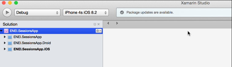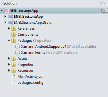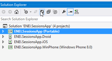 - ENEI.SessionsApp: Portable Class Library project that will contain the shared code between targets. This project is independent of the platform.