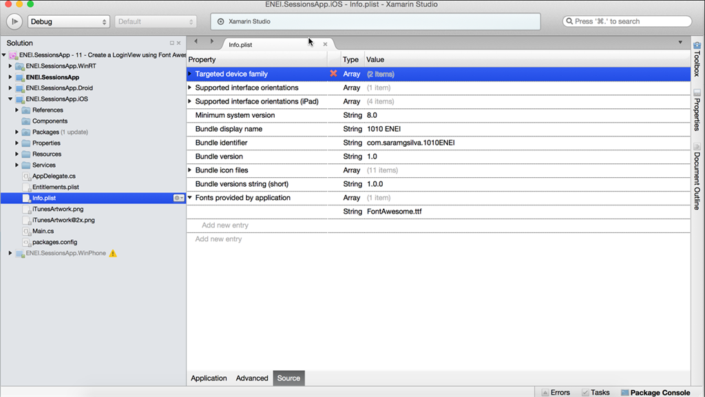 Figure: The Source panel from Info.plist in Xamarin Studio