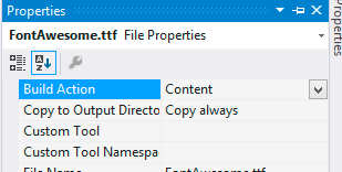 Add the FontAwesome.ttf file to the Resources folder as in the following: