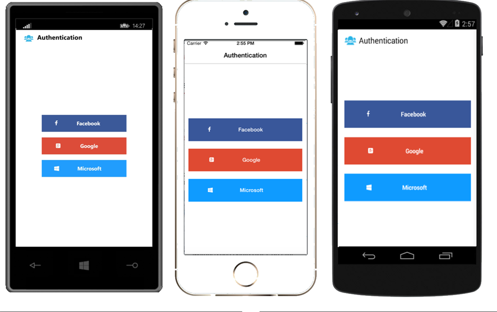 Creating the UI using Font AwesomeThe Font Awesome supports icons that can be displayed using a Label. That way it is possible to use this font to show an icon in the application. In this step you will use the Microsoft, Google and Facebook icons to display in the UI, this way you do not need to use images.